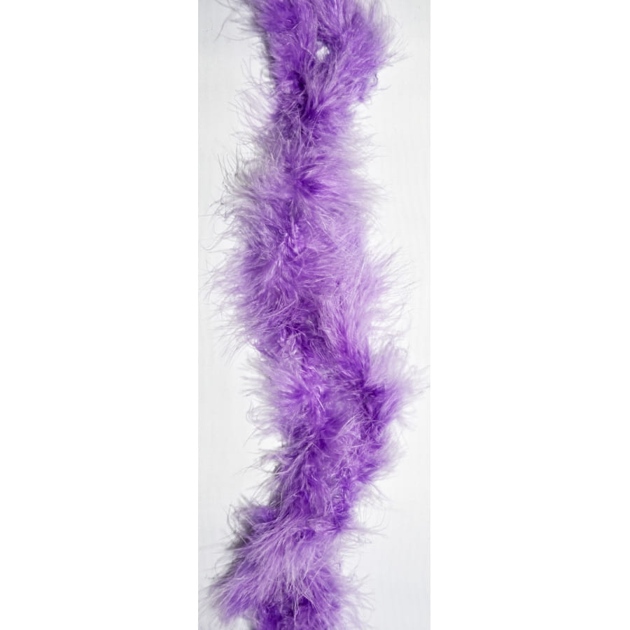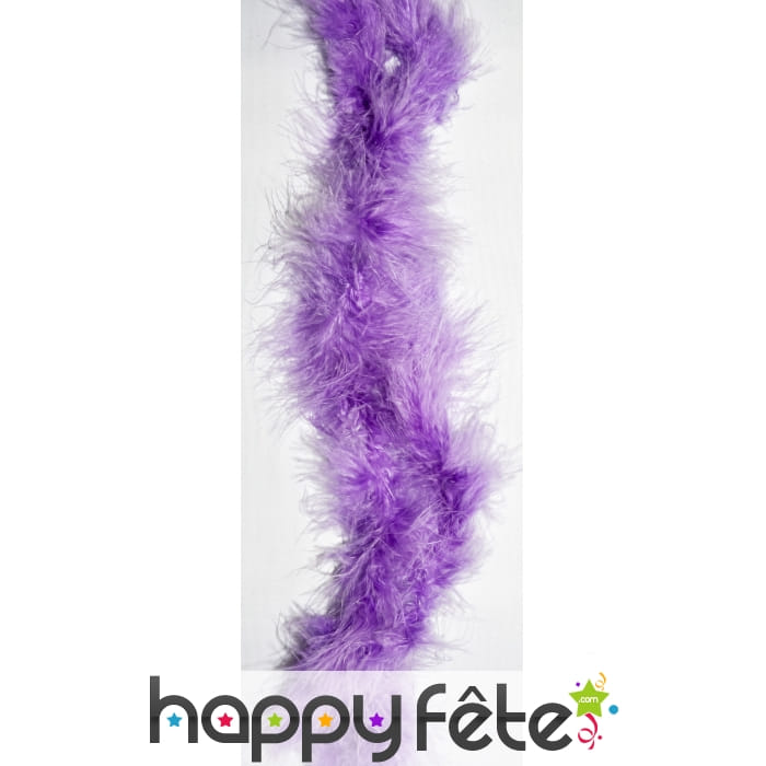 Boa en marabout de couleur parme, pour femme. La taille de cet accessoire est de 200 centimètres de long. Il ira très bien à un déguisement de cabaret ou à une tenue de danseuse excentrique.