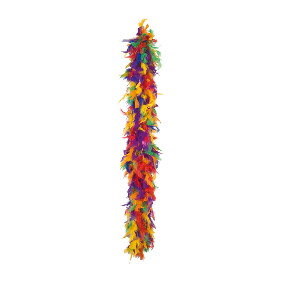 Si vous n'arrivez pas à vous décider sur la couleur du boa que vous allez mettre à une soirée, nous vous conseillons de les porter toutes. Et c'est possible avec notre boa multicolore, qui réunit toutes les nuances : violet, jaune, rouge, vert, bleu, ... bref toutes les plus beaux tons sont sur ce boa. Il a été fait en plumes et mesure 180 cm avec un poids de 80 grammes.