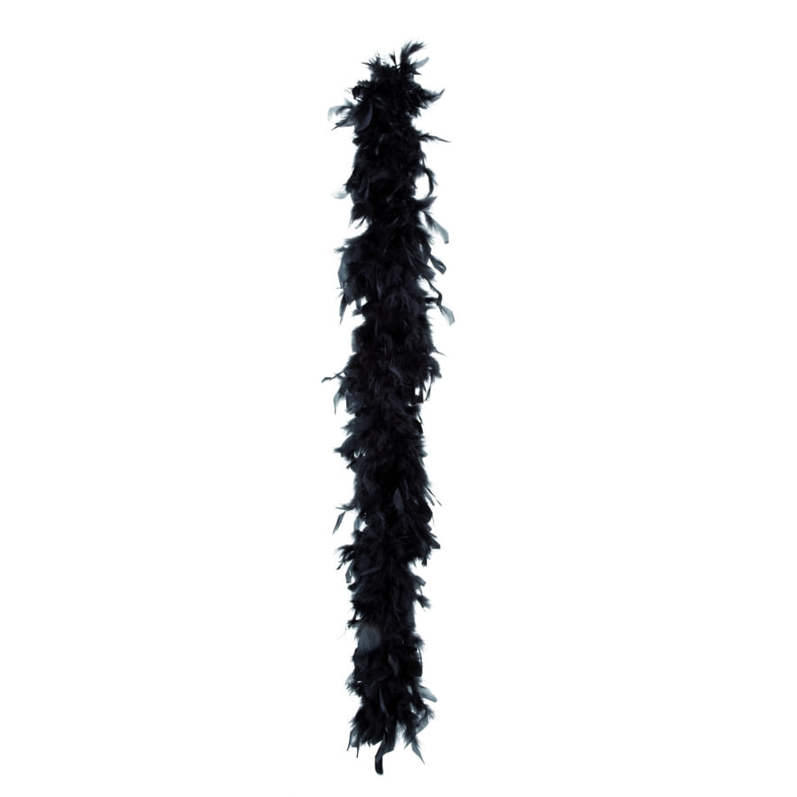 Boa en plumes noires pour femme. La taille de cet accessoire est de 180 centimètres de longueur et il pèse 50 grammes. Ce boa en marabout noir apportera une touche glamour à votre déguisement de danseuse de cabaret.