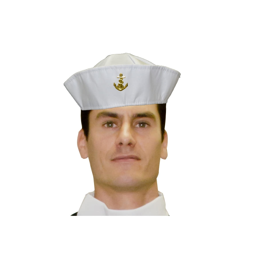 Les gens resteront en admiration devant vous avec ce chapeau de marin spécial. Et pourtant, ce n'est qu'un déguisement qui paraît très réaliste. En fait, vous disposez ici d'un bob marin de couleur blanche pour hommes. Il est décoré du fameux motif d'ancre de la marine sur le devant. L'ancre est de couleur or et bronze. Ce chapeau très authentique se portera sans modération à chaque fois que l'occasion se présentera, en premier lieu pour se déguiser en marin bien sûr !