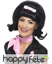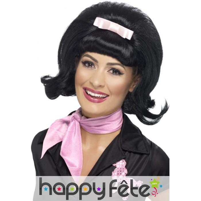 Les années 50, ça vous fait rêver ! Cette mode élégante et chic, ce mode de vie simple et authentique, ces films romantiques ! Il n'y a rien de plus beau pour vous que d'incarner une belle danseuse de ces années folles. Enfilez une belle robe avec des talons hauts, et adoptez cette perruque bob ruche. De couleur noir, avec un noeud en ruban, cet accessoire est très original, et vous aidera à revivre cette belle époque.