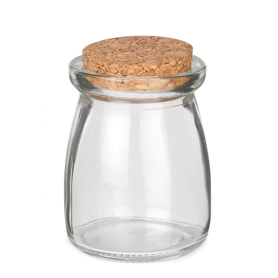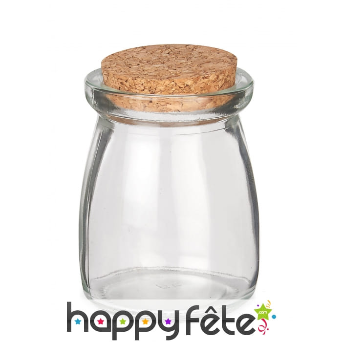 Le bocal de verre transparent de 8 cm possède un bouchon en liège.
