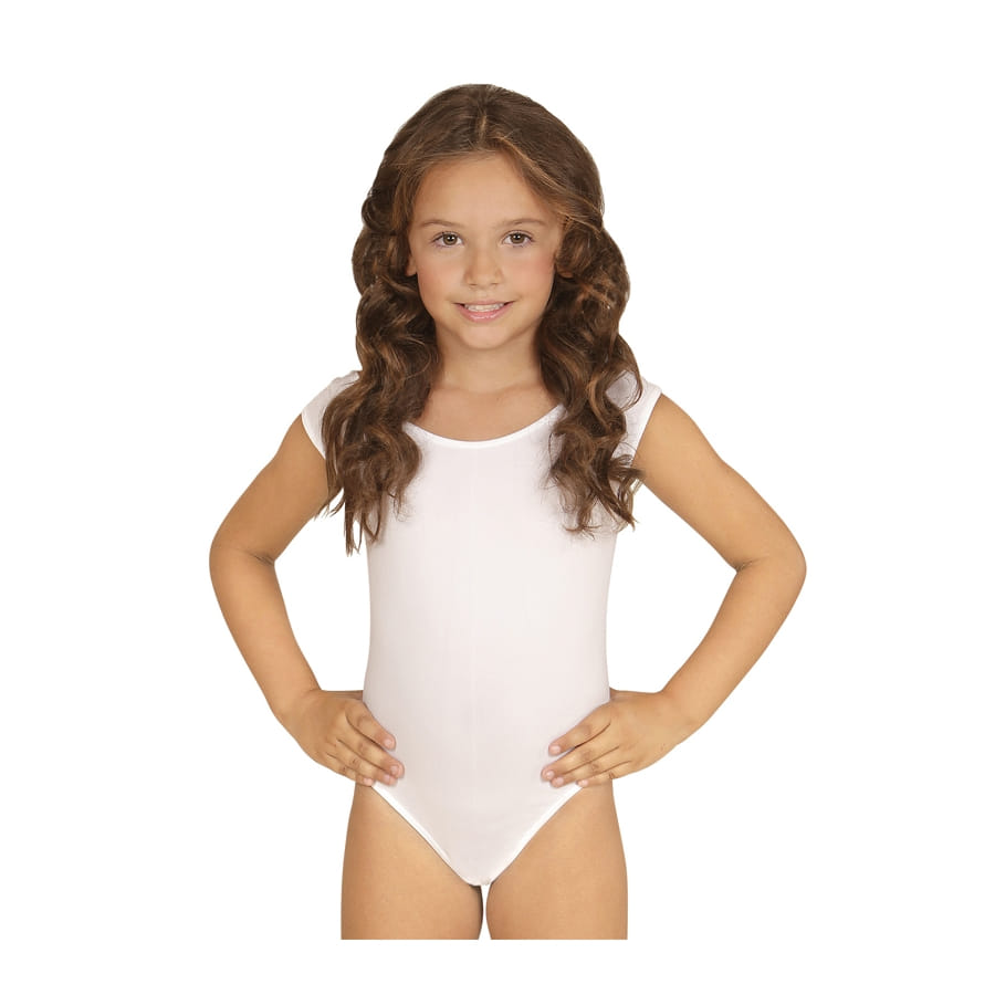 Il s'agit d'un justaucorps sans manches, de couleur blanc uni et se terminant en forme de slip.
