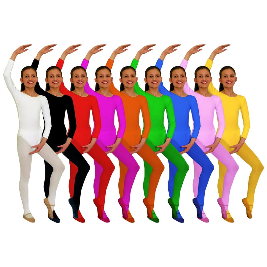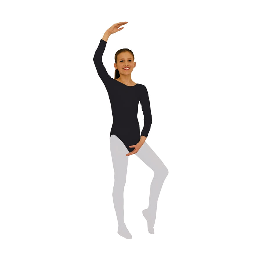 Body à 140 deniers à manches longues pour fille de 140 à 152 centimètres. Cet accessoire est disponible en blanc, fuchsia, jaune, noir, orange, rose, rouge ou vert. Choisissez la couleur qui rendra votre fille la plus belle de toutes pour son spectacle.