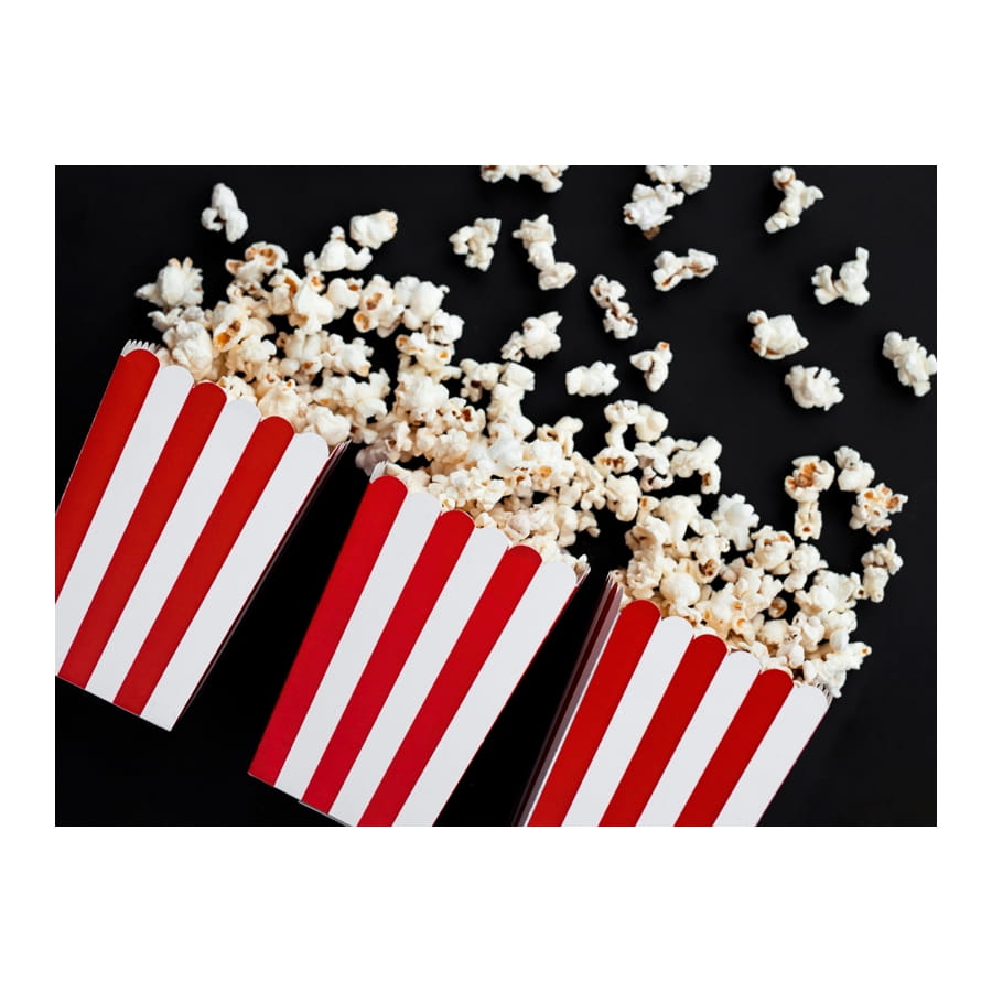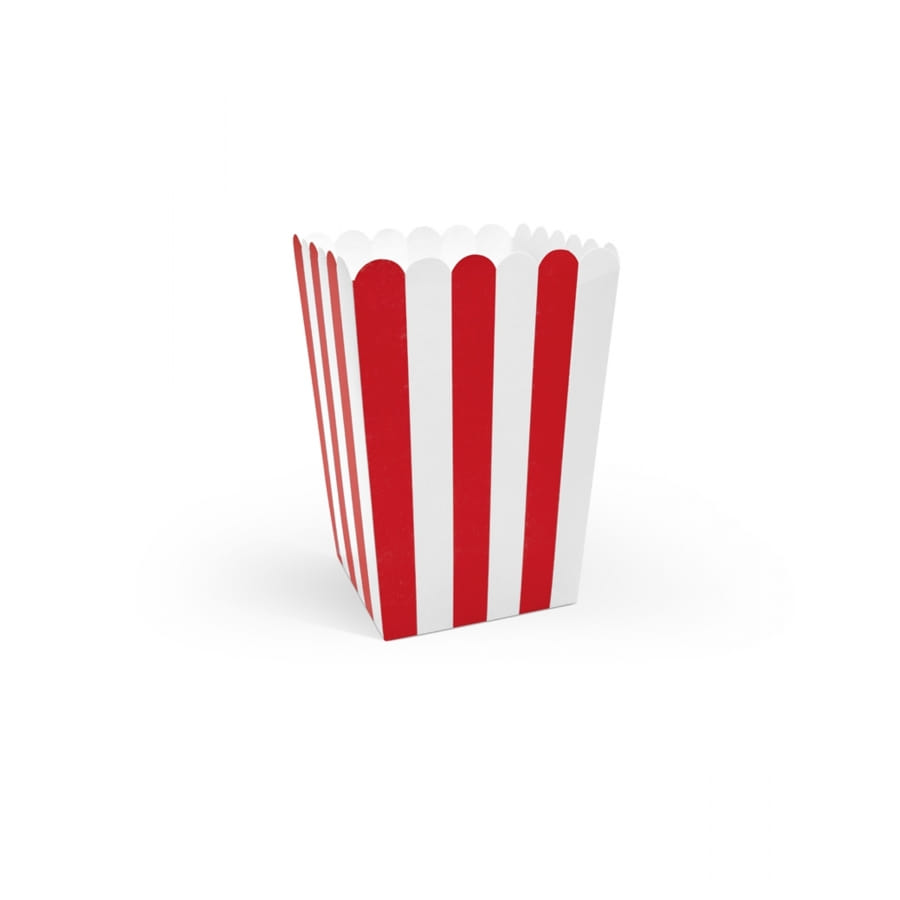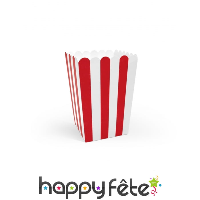 Absolument incontournables pour une soirée cinéma digne de ce nom, détendez-vous avec les boites à popcorn lignées rouge et blanche, par 6.