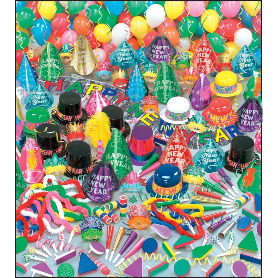 Pour vos fêtes optez pour cette boîte d'assortiments Super Bonanza "Happy New Year" contenant chapeaux, couronnes, sans-gêne, sarbacane, ballons et colliers en guirlande, pour 100 personnes. Ce kit est parfait pour les fêtes de fin d'année.