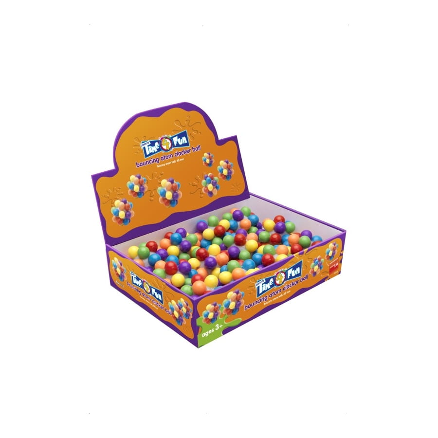 Boîte contenant une multitude d'atômes rebondissants et multicolores. Apprenez comment fonctionne les atômes avec cette boîte. Ce jeu ne convient pas aux enfants de moins de 3 ans.