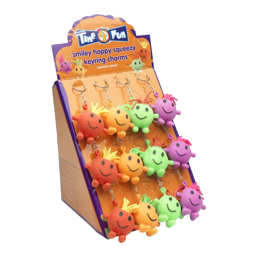 Porte-clefs smileys pour homme, femme, adolescent, adolescente, garçon ou fille, vendus par lot de 12. Le lot contient 4 porte-clefs rouges, 4 verts, 4 orange et 4 violets. Distribuez-les lors d'une kermesse!