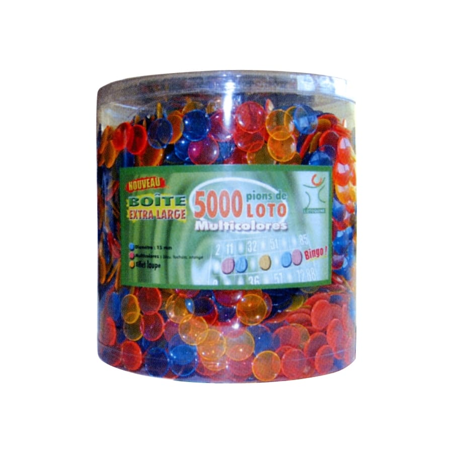 Pions multicolore en plastique transparent. Ils sont vendus uniquement en boîte de 5000 pièces. Ces pions sont particulièrement pratique pour organiser une kermesse ou une soirée de jeux de société.