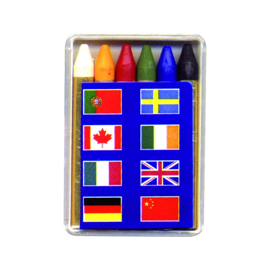 Vous voulez supporter votre équipe, affichez donc leurs couleurs grâce à cette boite de 6 crayons gras. Elle vous permettra de réaliser des maquillages aux couleurs des pays de l'union européenne. A vous de voir comment vous allez vous maquiller, facile a enlever grâce à de l'eau et du savon.