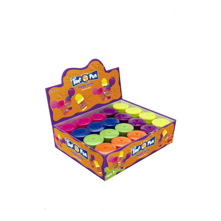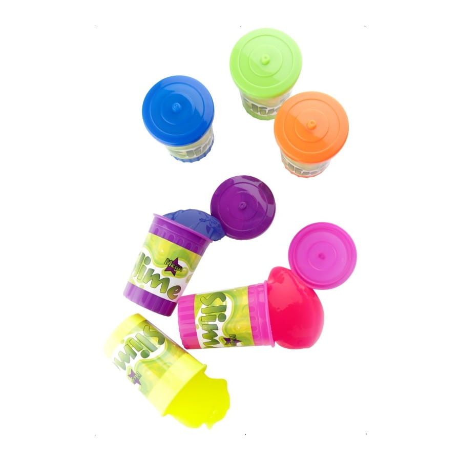 Boîtes de substance visqueuse vendues en lot de 20. Les substances sont similaires à de la pâte à modeler et le lot contient les couleurs orange, verte, violette, jaune, rose et bleue. Avec cette boîte, vos enfants laisseront parler leur créativité!