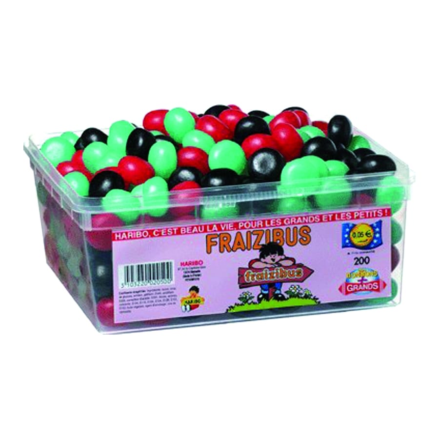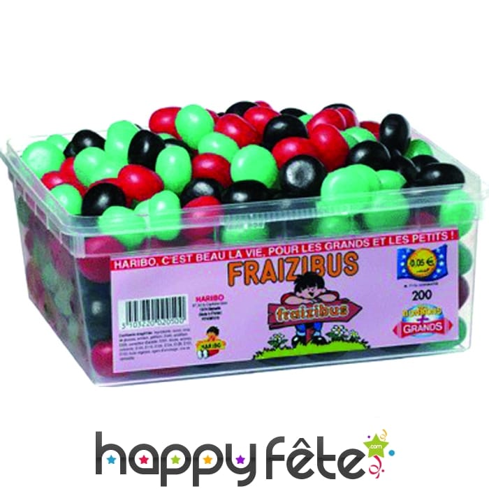 Pour un anniversaire pourquoi ne pas faire vos invités dégusté cette gourmandise ou tout simplement pour vous même. Ces fraizibus haribo enchantera leurs papilles. Ils sont dans une boite de 210 avec un agréable gout de fruit. De couleur vert, rouge et noir vous pourrez aussi vous en servir pour célébrer une naissance.