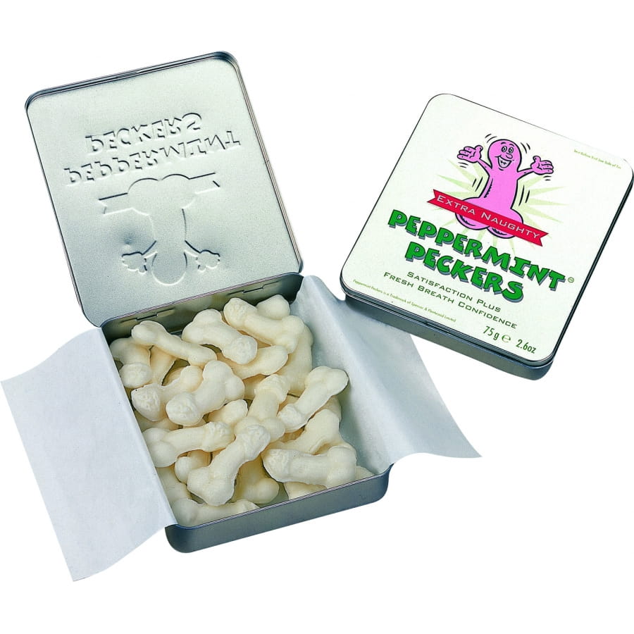 Pour vous rafraichir la bouche ou pour donner a vos invités lorsqu'ils s'en vont , ces bonbons en forme de zizi. Cette boite de 75 g de bonbons à la menthe vous servira à plusieurs reprises. De couleur blanc, ces bonbons sont interdits à la vente aux mineurs.
