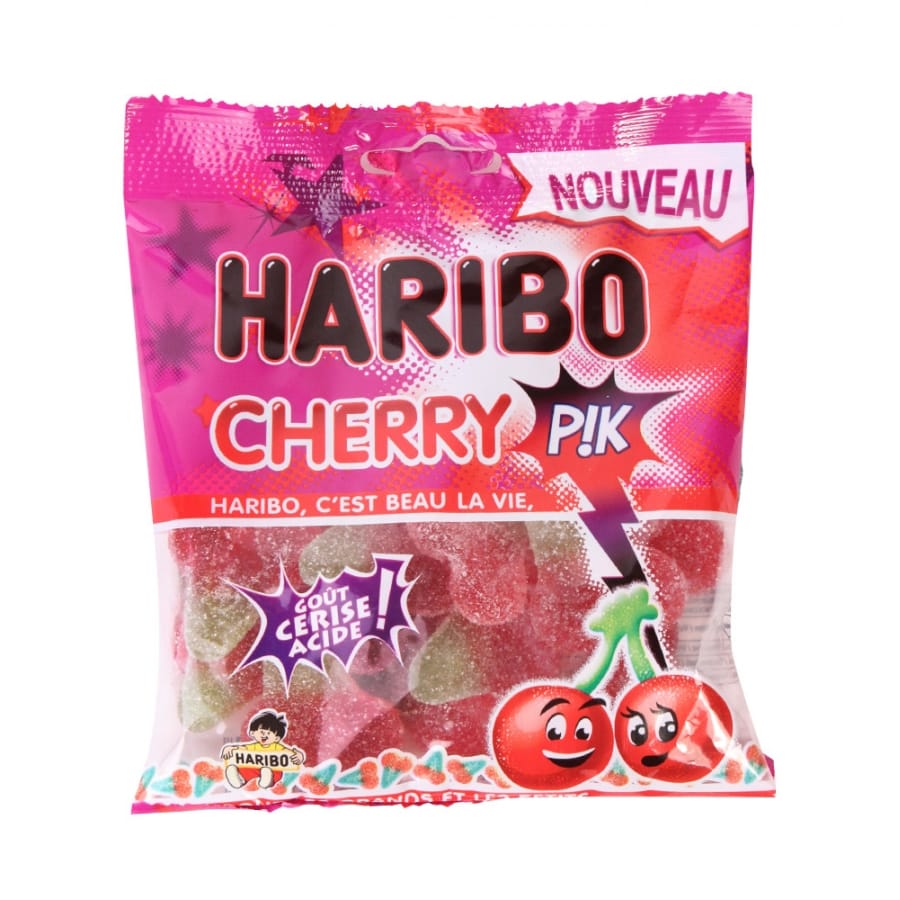 Ce sachet de bonbons Cherry pik, Haribo contient 120 g de confiseries.