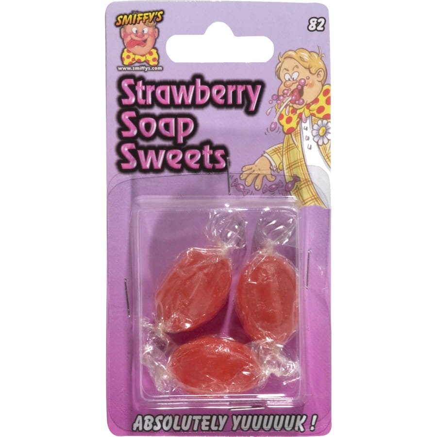 Accessoire de farce et attrape constitué d'un sachet de 3 bonbons fraises au goût de savon. En leur offrant ces bonbons, vos amis penseront qu'ils auront un goût de fraise, mais ils se trompent!
