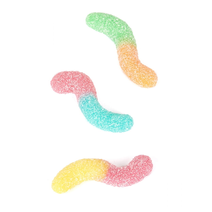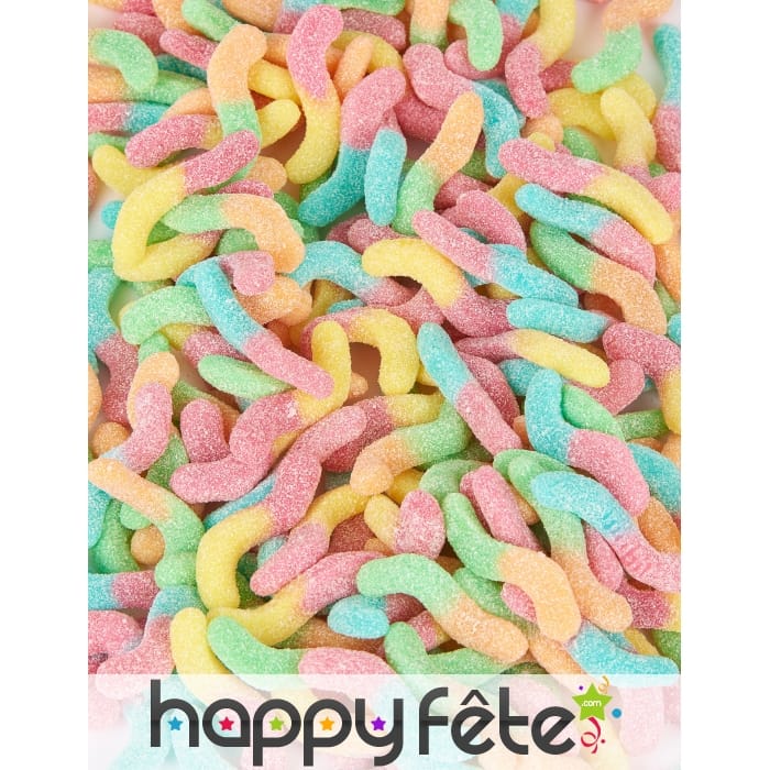 Le paquet de bonbons en forme de vers de terre bicolores pèse 1 kg.
