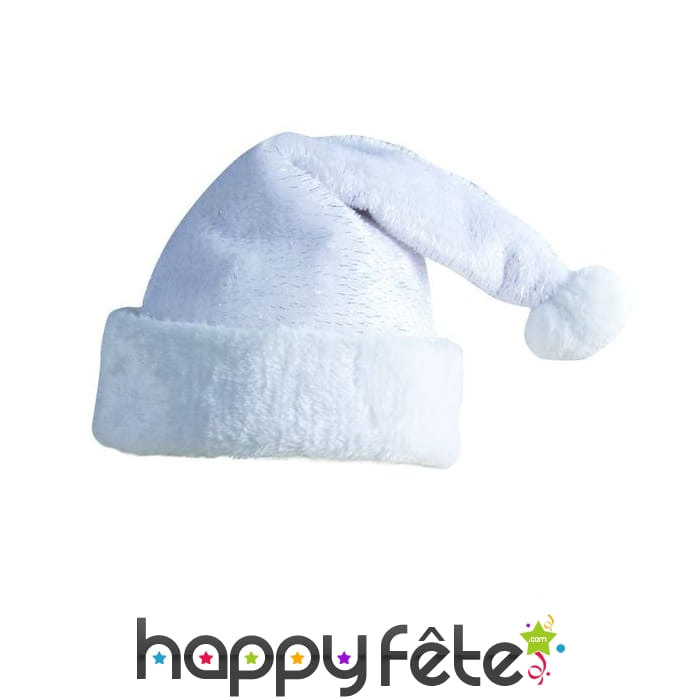 C'est un chapeau de Père Noël en imitation fourrure de couleur blanche.