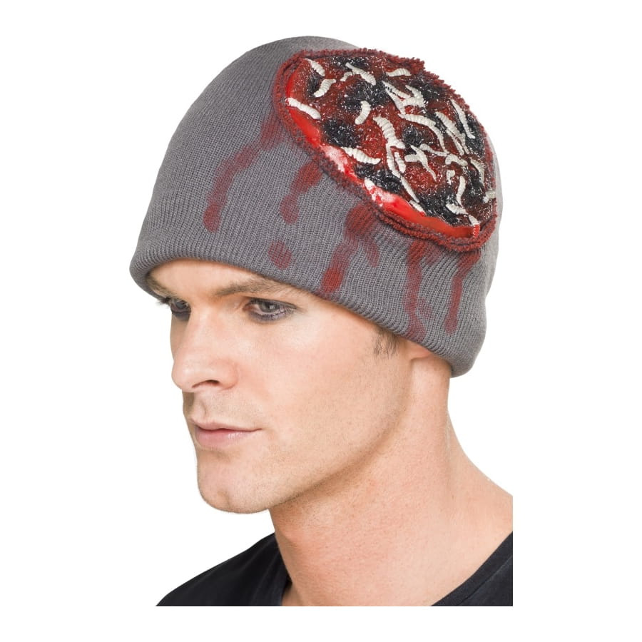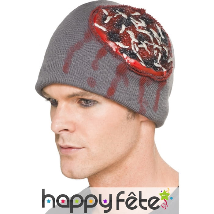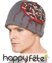 Bonnet de couleur grise, avec crâne ensanglanté rempli d'asticots, pour homme ou adolescent. Avec ce bonnet, vous aurez l'air d'avoir été attaqué par un zombie ou un tueur, de quoi inquiéter vos amis!