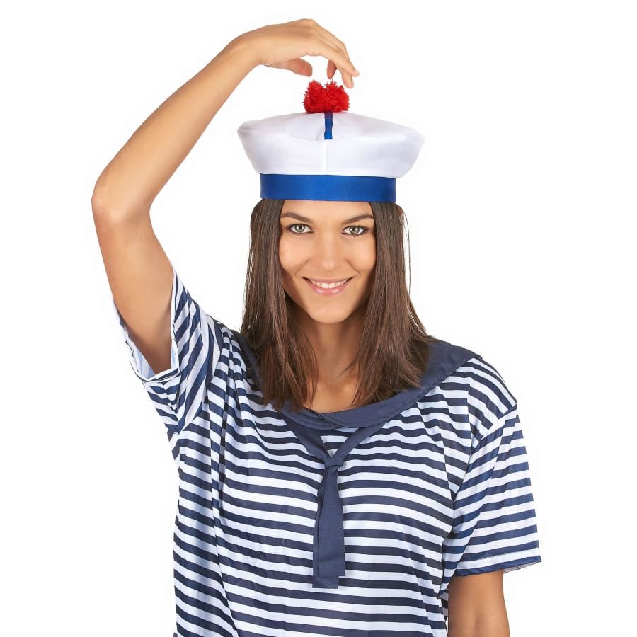 Avec le bonnet de marin blanc bleu pompon rouge, vos soirées déguisées seront bien mouvementées.