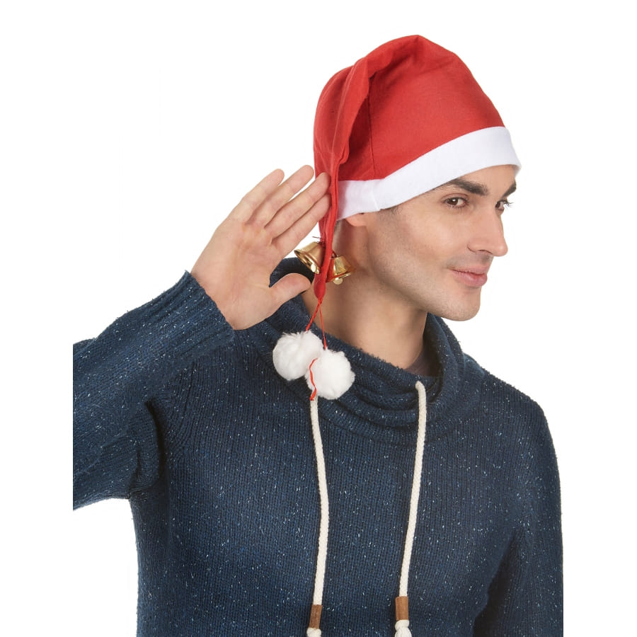 Le bonnet de Noël avec double pompon et grelots est un accessoire original pour adulte.
