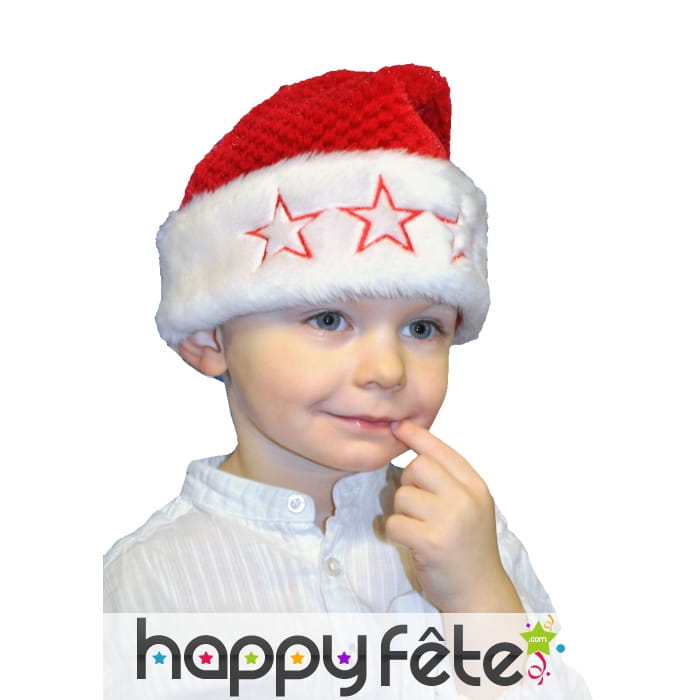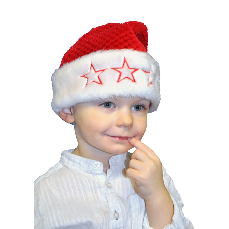 Le Père Noël, les enfants l'attendent impatiemment et sagement toute l'année. Et si les enfants sont sages pendant toute une année, c'est bien grâce à ce vieux Monsieur barbu, tout gentil et habillé de rouge et blanc, qui offre des jouets aux enfants sages. Faites alors plaisir à votre enfant en lui offrant ce vrai bonnet de Père Noël à sa taille. De couleur rouge et blanche avec de jolies étoiles dessinées sur le devant, ce bonnet, il ne voudra jamais le quitter tellement il sera doux à porter, étant donné qu'il est en peluche gaufré.