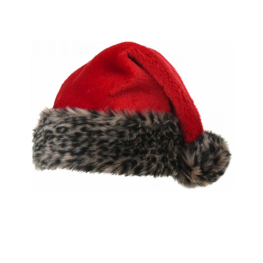 Pour vous mettre dans l'ambiance des fêtes de fin d'année, nous vous proposons ce bonnet de Noël peluche léopard pour adulte.