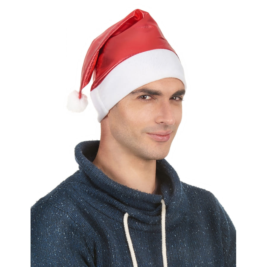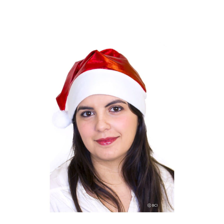 Le bonnet de Noël rouge effet métallisé est pour adulte.