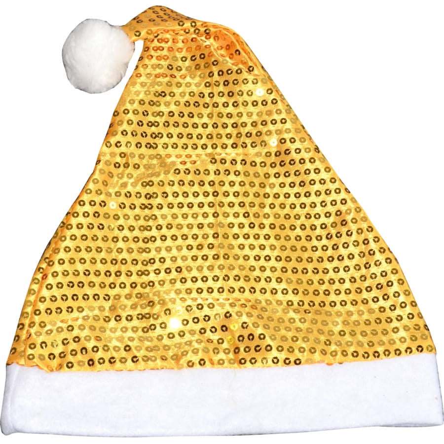 Magnifique bonnet de Noël disco entièrement recouvert de paillettes dorées avec rebord et pompon blancs. Cet accessoire est parfait pour ajouter une petite touche Bling Bling à votre tenue de Noël.