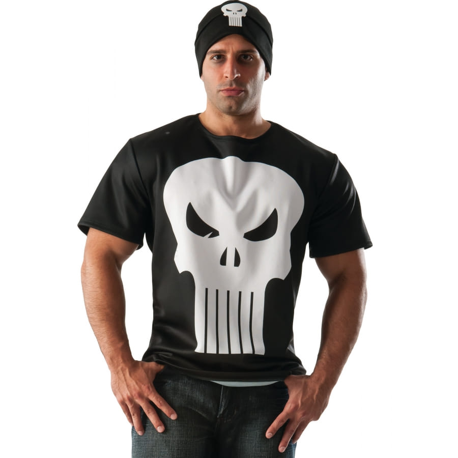 Pour le prochain Halloween, optez pour une tenue originale et simple avec ce bonnet et T-shirt du Punisher pour homme.