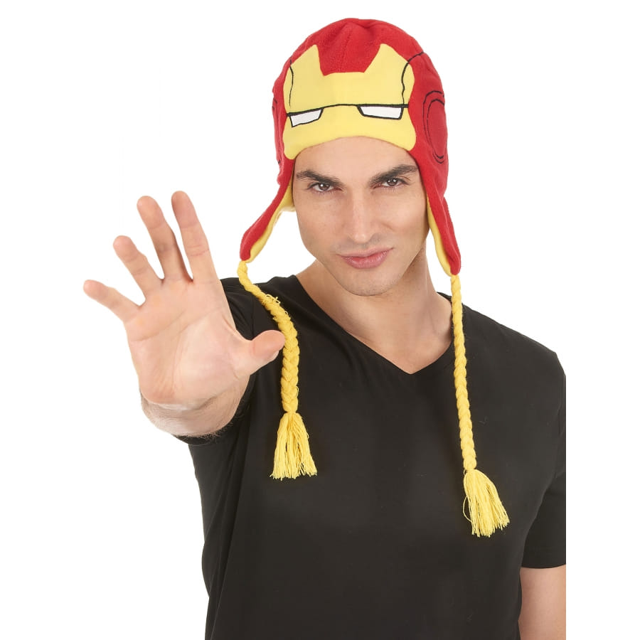 Le bonnet haut de tête Iron Man pour adulte est fait à partir d'un tissu effet polaire.