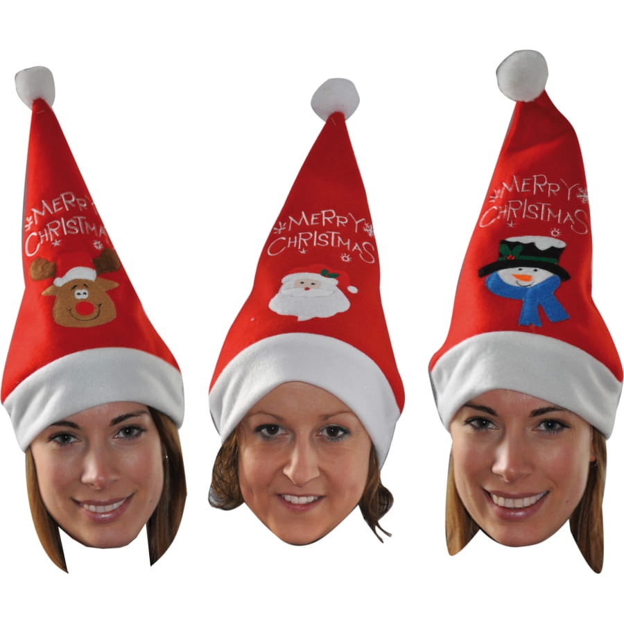Vous serez sensationnel avec ce bonnet de Noël brodé. Il vous sera impossible de choisir le modèle ou la couleur lors de la commande. Vous recevrez un des 3 modèles présentés. Ce bonnet est idéal pour compléter un déguisement de Père ou de Mère Noël.
