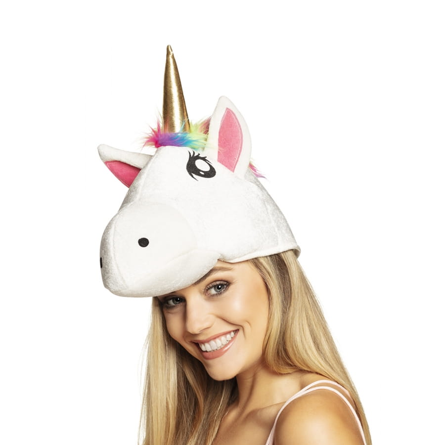 Le bonnet représentant une tête de licorne blanche pour adulte est un chapeau destiné aux femmes.
