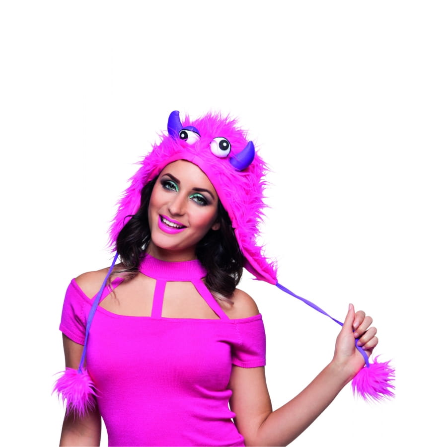 Le bonnet tête de monstre rose rigolo est un chapeau pour adulte.