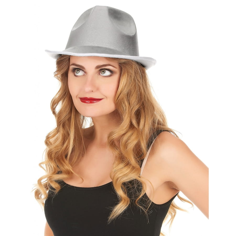 Pour une soirée costumée ou un carnaval, ajoutez une petite touche de raffinement et de sobriété à votre déguisement de gangster avec ce borsalino argenté uni pour adulte.