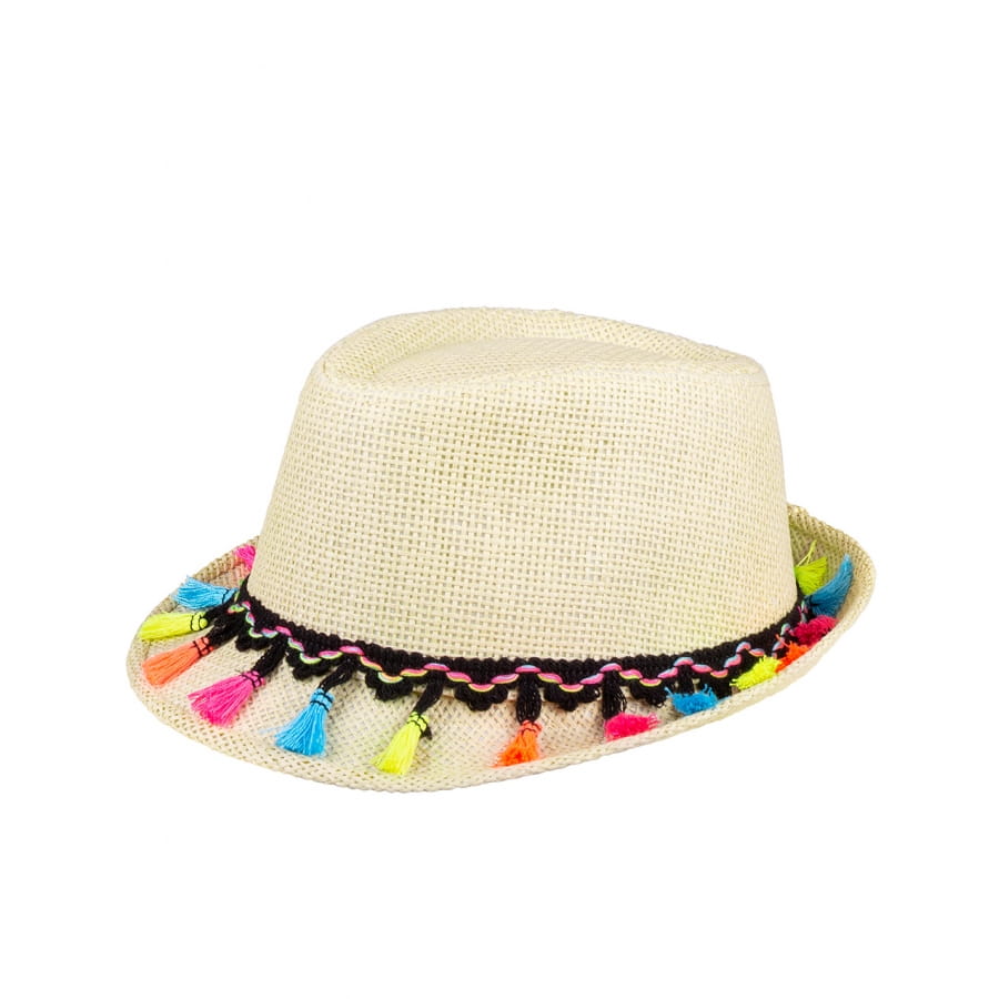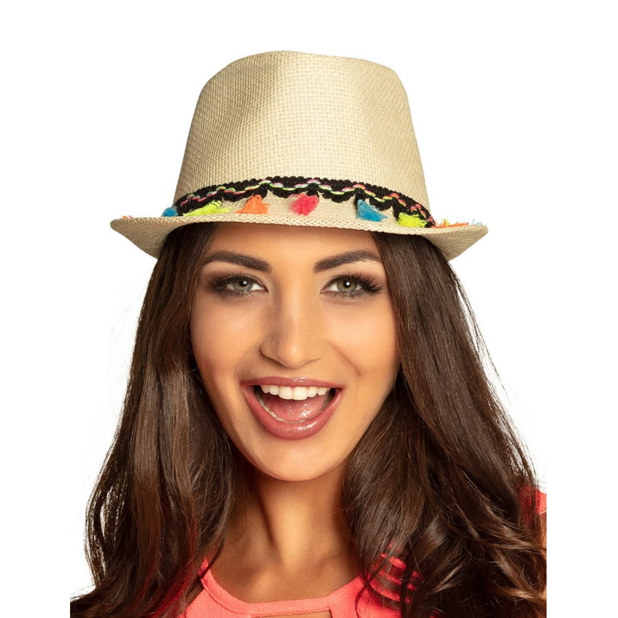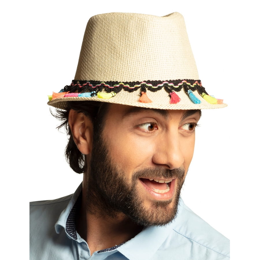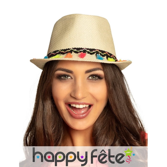Le borsalino avec pompons colorés est destiné aux adultes.