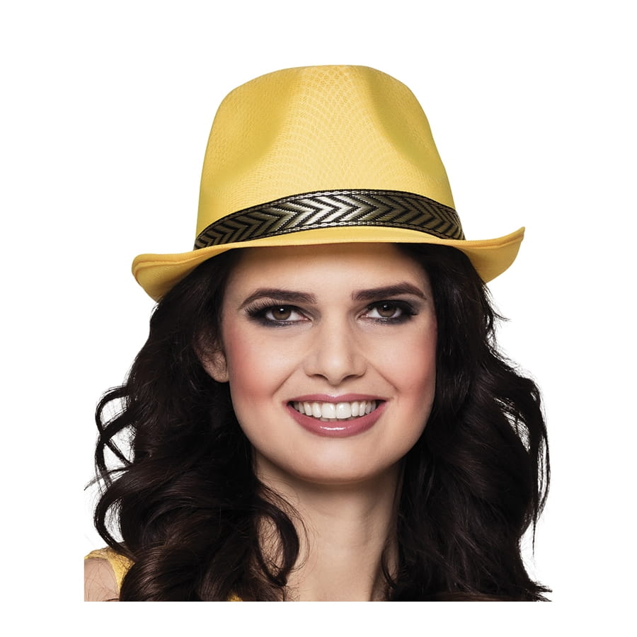 Arborez fièrement ce borsalino jaune avec liseret noir et doré et associez-le avec des tenues flashy.