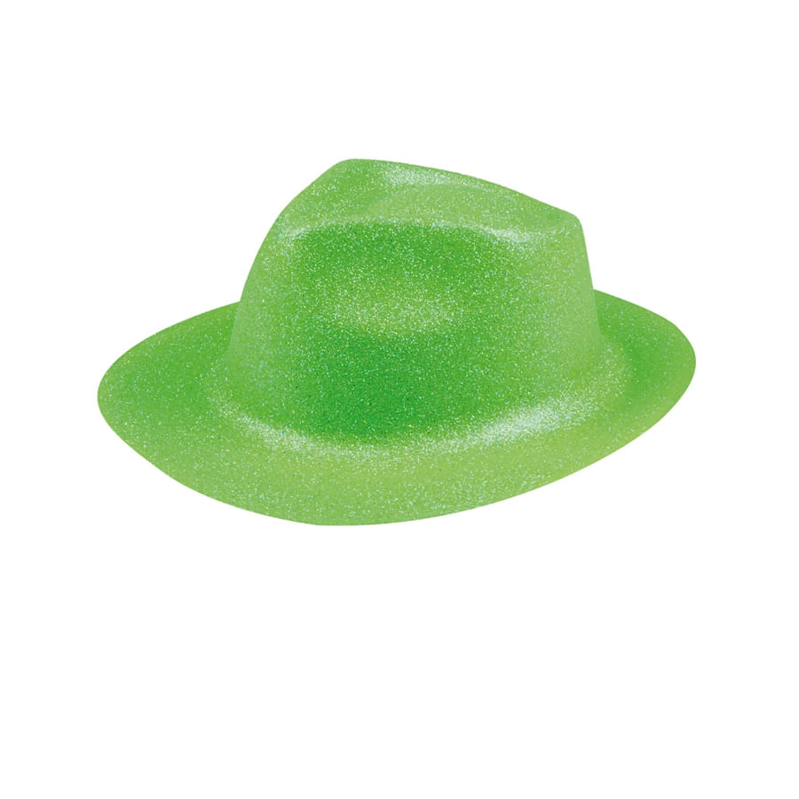 Le borsalino pailleté vert fluo pour adulte est en plastique fin.
