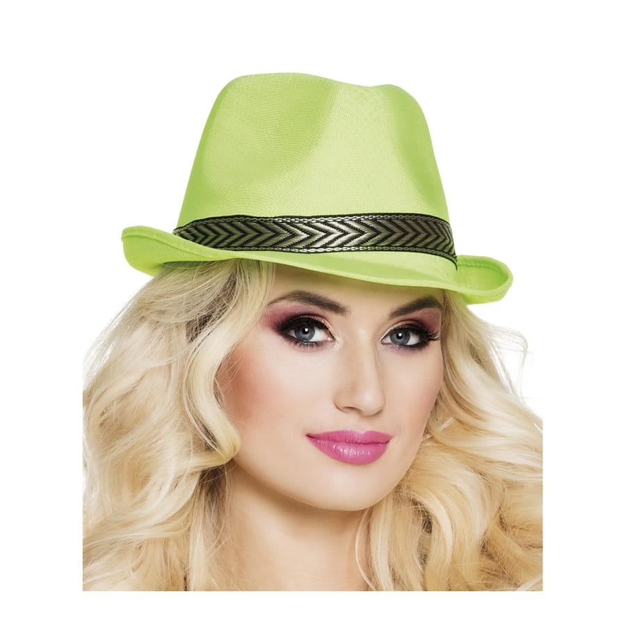 Pour parfaire votre tenue, n'hésitez pas à porter ce borsalino vert fluo uni avec lisert doré noir.