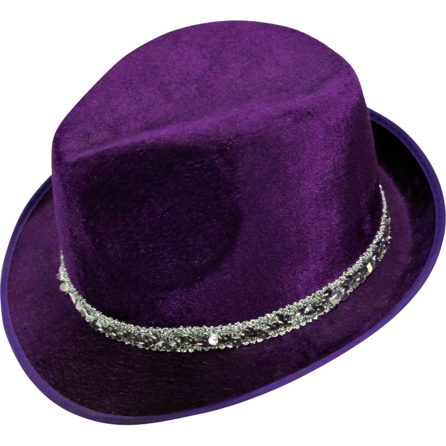 Borsalino entièrement en velours violet, agrémenté d'un magnifique ruban en paillettes argentées. Cet accessoire pour homme ou adolescent est d'une qualité supérieure. Vous pourrez l'utiliser pour compléter votre déguisement de gangster avec classe pour une soirée basée sur le thème de la mafia ou des années 20-30.