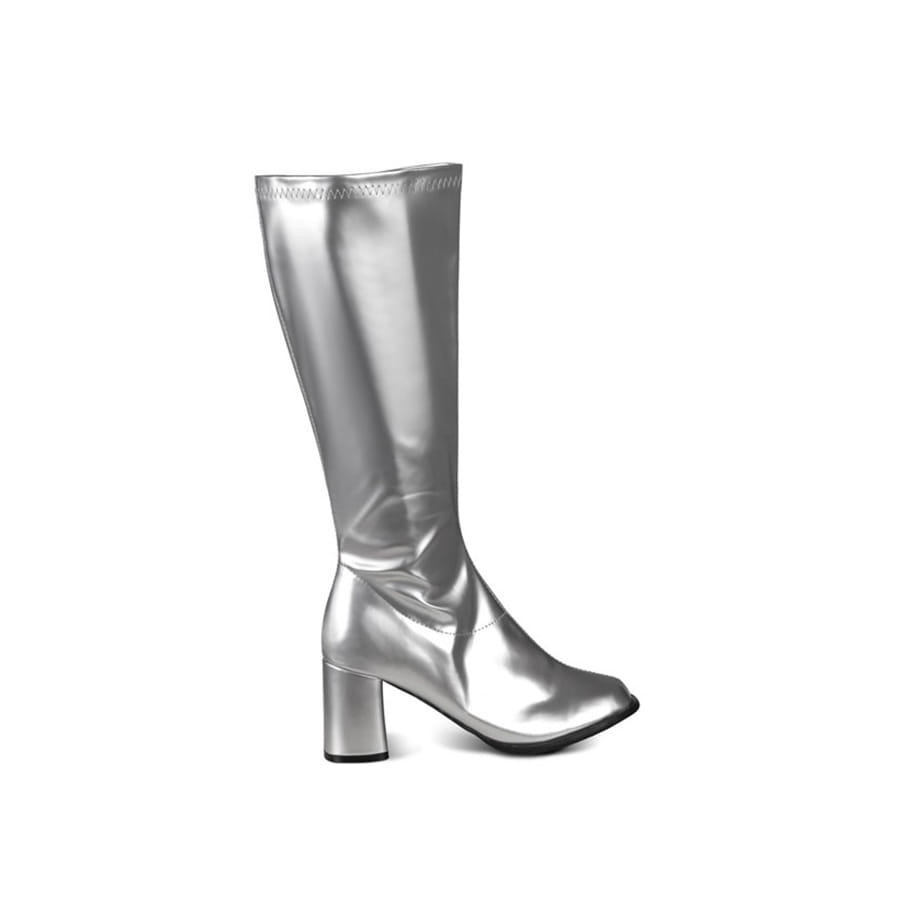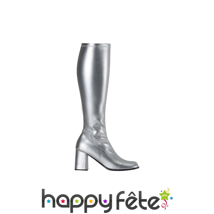 Bottes sexy Gogo argentées. Les pointures disponibles sont 37-38/39-40. Ces bottes sont idéales pour un déguisement de Lady Gaga ou de danseuse disco.
