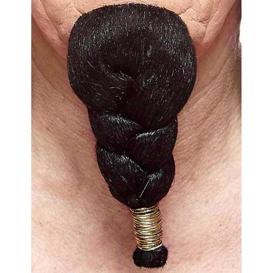 Le bouc noir tressé adhésif pour homme est constitué de poils synthétiques décorés d'une attache dorée.