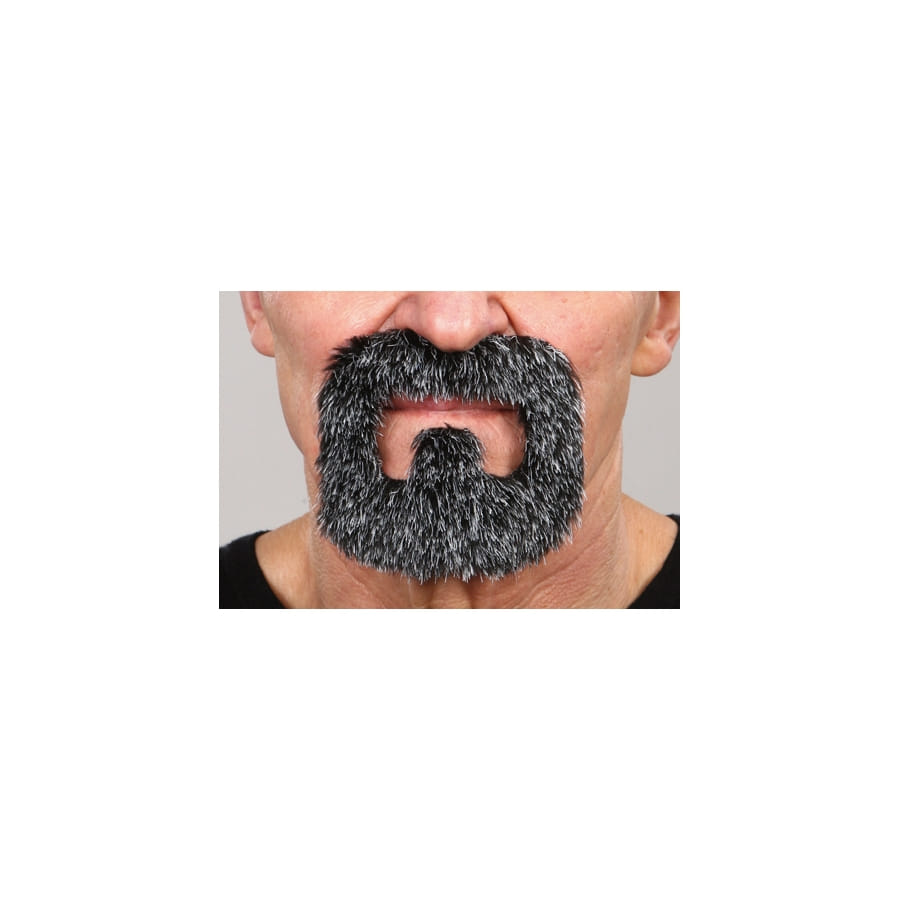 Pour incarner un chef de la mafia, il faut être un peu avancé en âge, parce qu'on ne devient pas un chef de la mafia du jour au lendemain. C'est pour cela que la barbe que nous proposons pour un déguisement de chef de la mafia est poivre et sel, de couleur noire et grise. Elle est composée d'une moustache et d'un bouc de 10,5 cm de longueur et 9,5 cm de largeur. Elle est auto-adhésive et a été conçue en Europe.