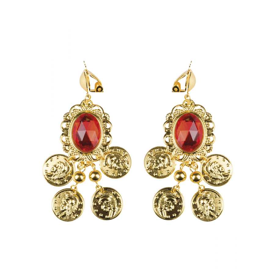 La paire de boucles d'oreilles dorées orientales, pierre rouge est un accessoire pour femme.