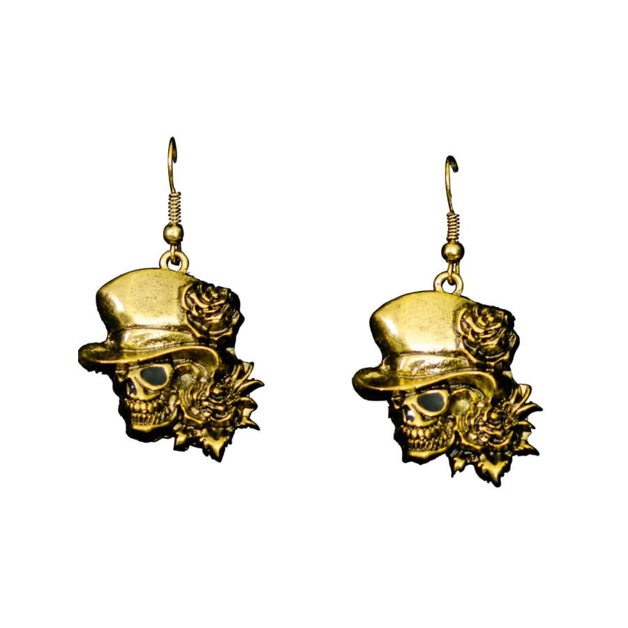 Les boucles d'oreilles dorées crâne avec chapeau sont des bijoux en métal solide pour femme.