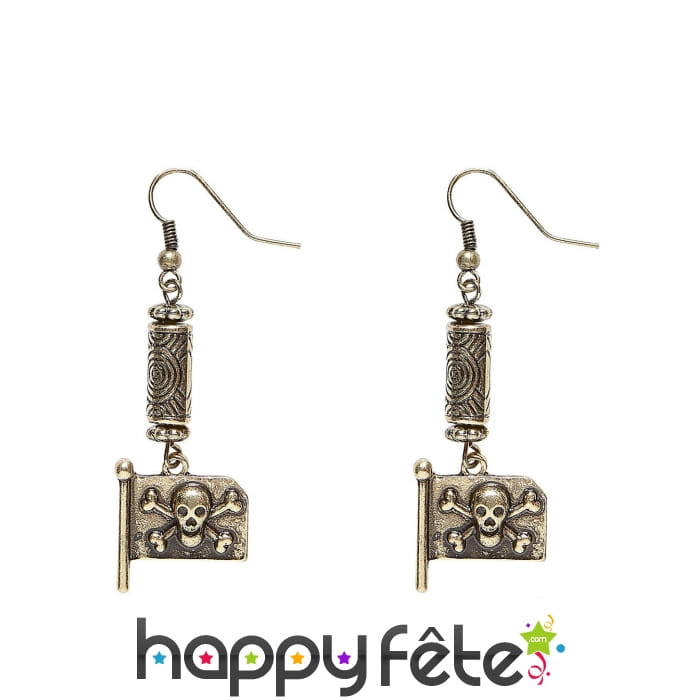 Rehaussez votre tenue de bandit des mers avec notre paire de boucles d'oreilles drapeau pirate et crâne.