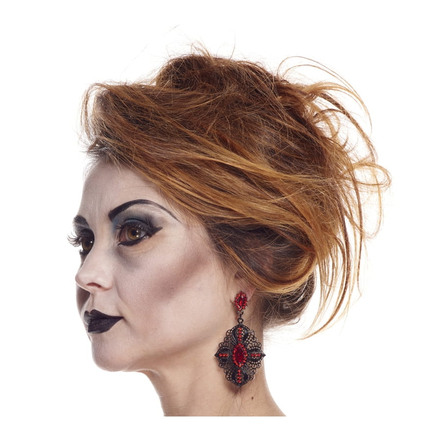 Attirez les regards avec des boucles d'oreilles gothiques dentelle rouge/noir. Ce modèle spécialement conçu pour vous Mesdames est constitué par des motifs en dentelle présentés dans les couleurs rouge et noir. L'accessoire ne passera pas inaperçu avec une tenue gothique ou avec un déguisement de vampire. Il vous suffit de relever vos cheveux pour bien le mettre en évidence.