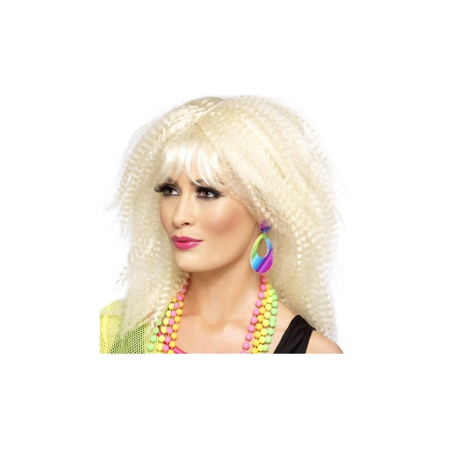 Paire de magnifiques boucles d'oreilles hippie multicolores, pour femme ou adolescente. Les boucles d'oreilles sont un mélange de bleu, de vert, de violet et de rouge, vous permettant de les associer à des tenues tout aussi colorées pour un déguisement de baba cool pour une fête basée sur le thème des années 70-80.