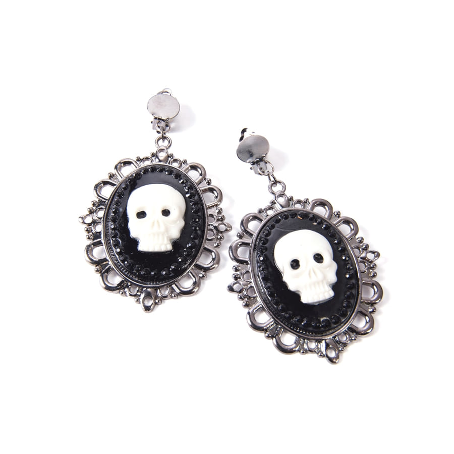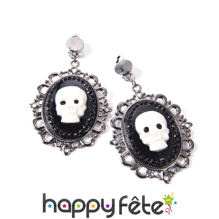 Nous sommes ravi de vous présenter ces boucles d'oreilles tête de mort, camée ! Les bas de ces boucles sont en forme de camée, de couleur noire et argentée, avec une tête de mort blanche en relief. Cet accessoire est réservé aux femmes. Vous pourrez l'accompagner d'un costume de squelette, de vampire ou de sorcière. Et ce sera l'ultime détail qui vous rendra unique lors de votre prochaine soirée Halloween ou de votre soirée Horreur.