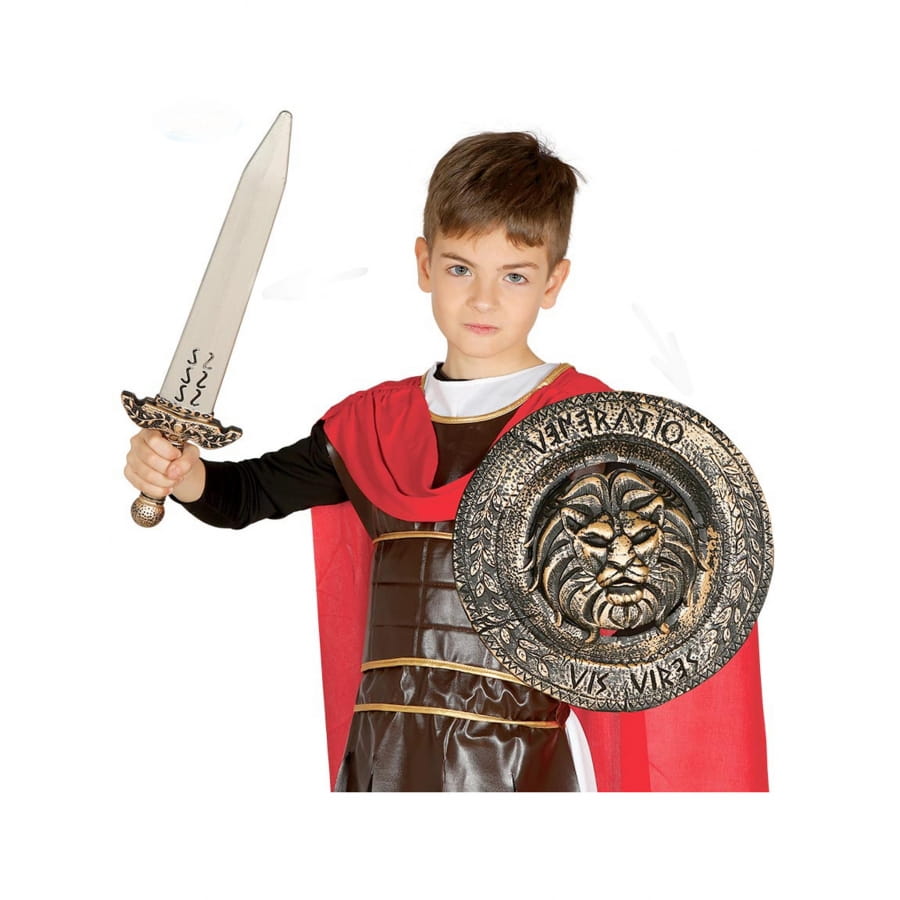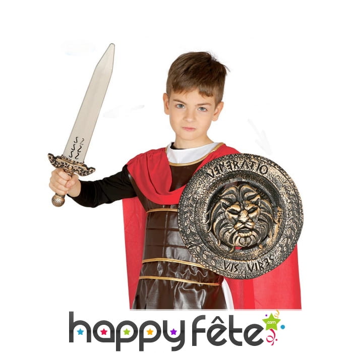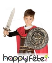 Ce Bouclier de romain avec épée pour enfant sera l'élément qui complétera à merveille le déguisement de valeureux soldat prêt à servir César.