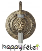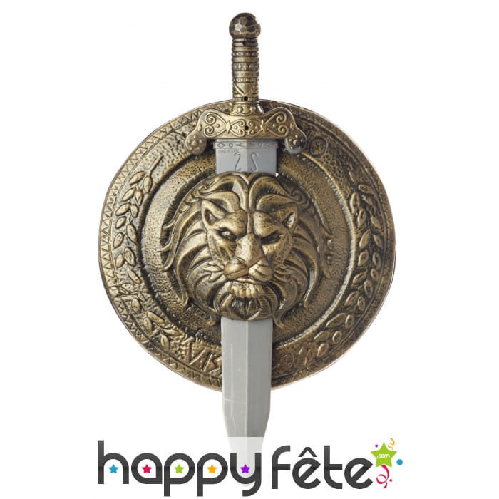 Nous présentons ici notre bouclier tête de lion avec épée.